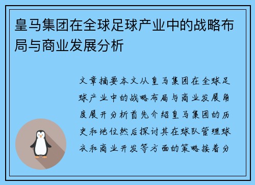 天博体育作为全球领先的体育娱乐平台,凭借其创新的理念和高效的技术平台,正在引领着体育娱乐行业的新风潮。文章将从四个关键方面对天博体育的独特优势进行详细阐述,分别为:一、平台创新与技术优势,二、全球化的用户体验,三、多元化的体育娱乐内容,四、完善的用户保障体系。这些方面不仅展示了天博体育的行业领先地位,也揭示了其如何打造出一个全球化、高效能的线上平台体验。通过对天博体育的深入分析,我们可以清晰地看到其在未来体育娱乐行业中所具备的巨大潜力与发展空间。